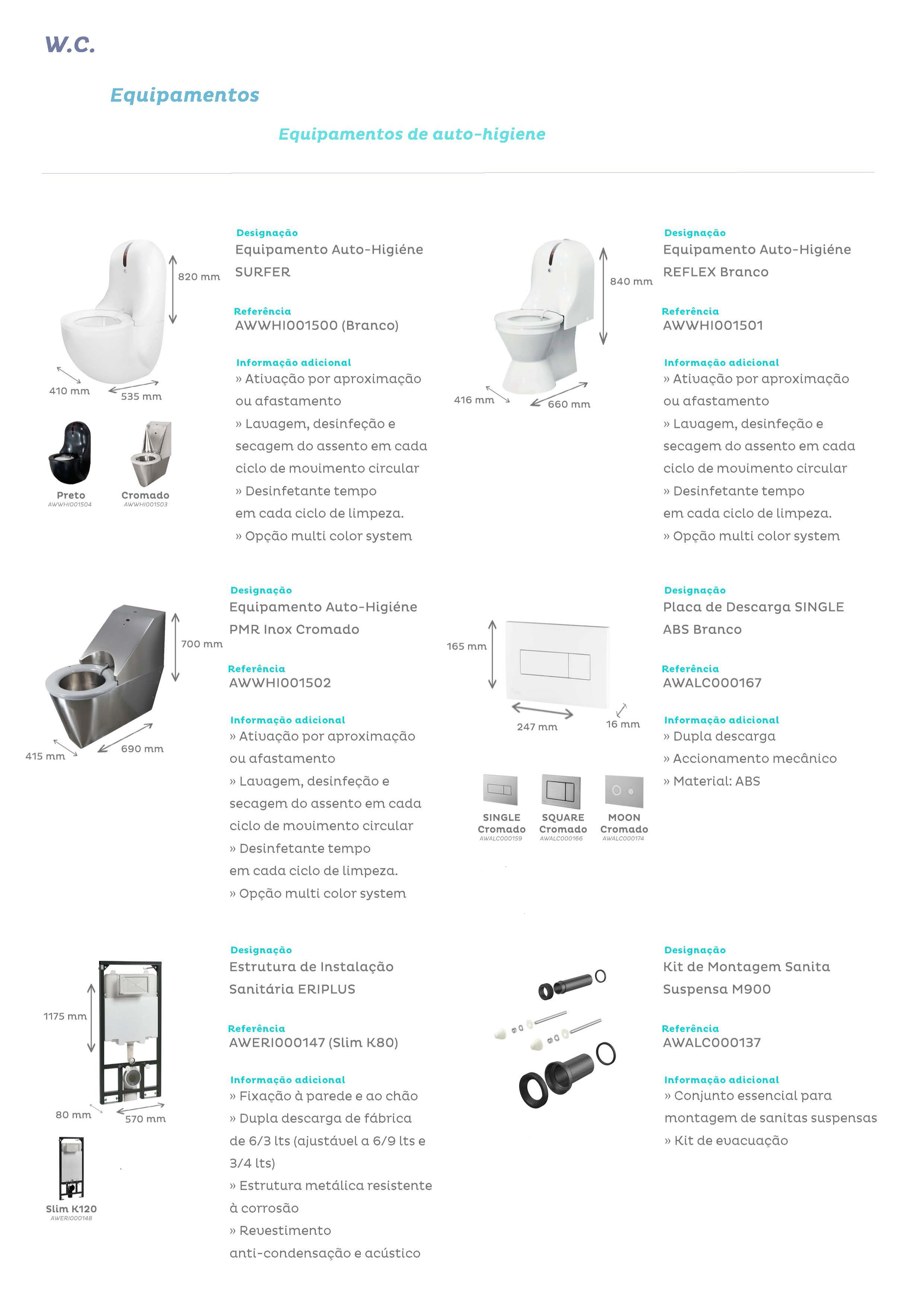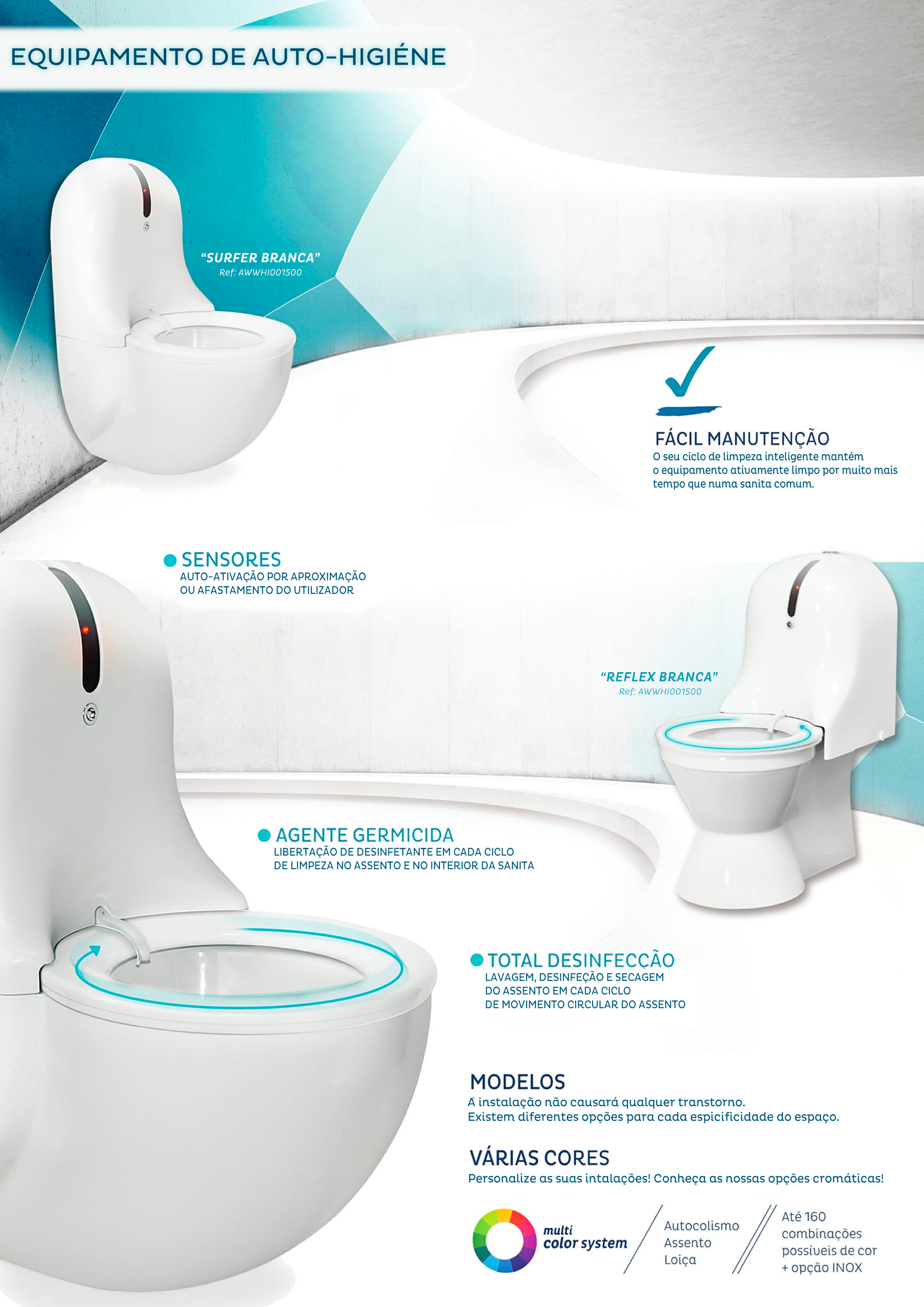 Investimos diariamente as nossas forças num constante melhoramento, de forma a lhe oferecer o conforto da sua casa num W.C. WHITER, num conceito “SAFE W.C.”.